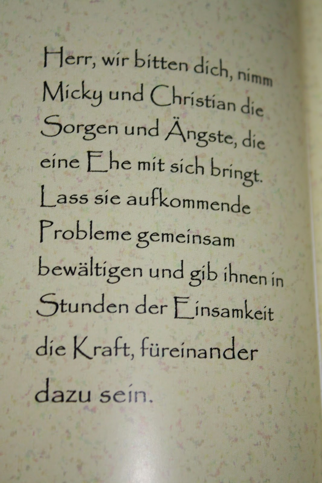 Unsere Mütter, unsere beiden Trauzeugen und ich sprachen jeweils eine Fürbitte.