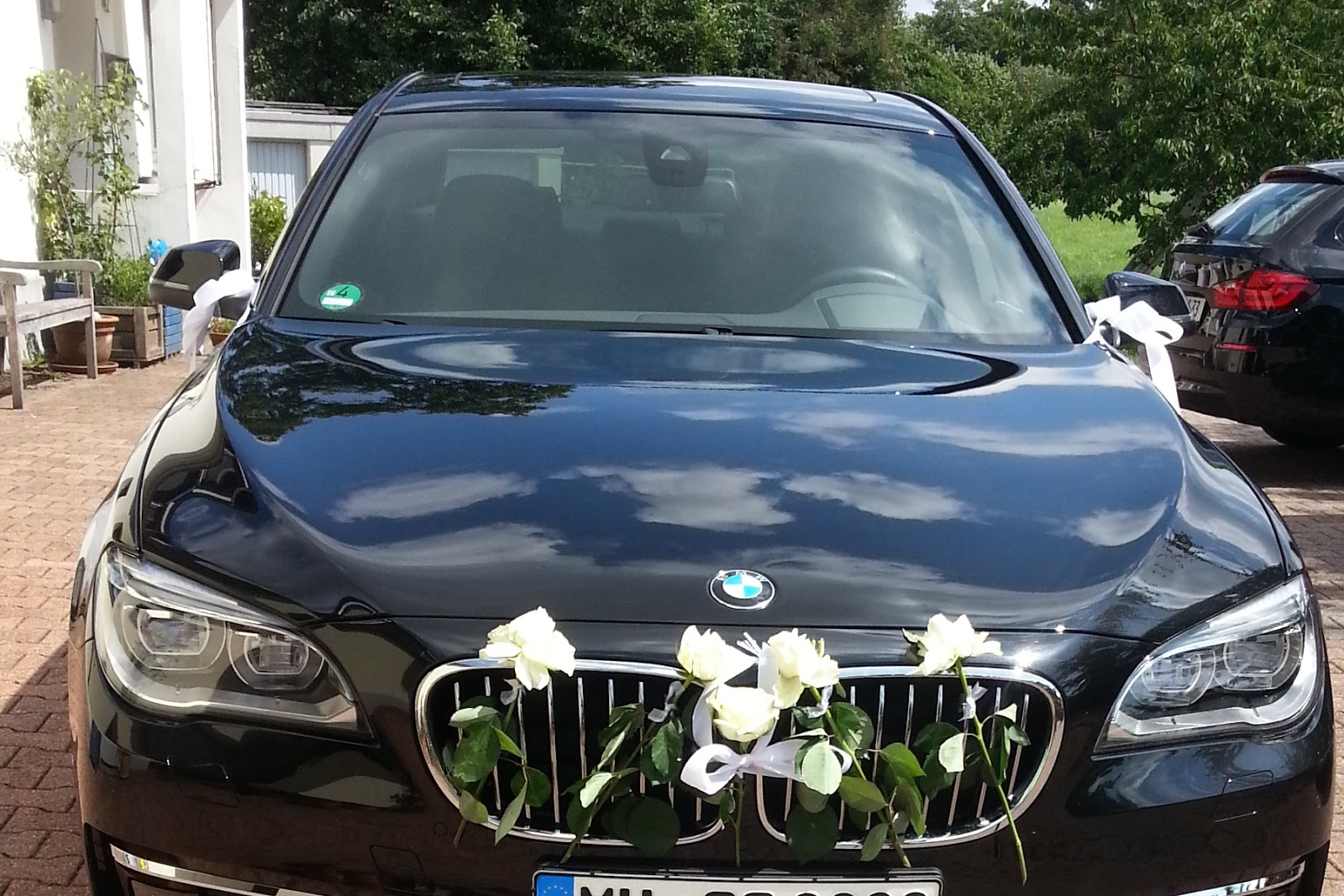 Unsere standesamtliche Trauung fand am heißesten Tag des Jahres statt. Immerhin war es am nächsten Tag zur kirchlichen Trauung 10° C kühler, aber mit 25-27° C immer noch recht warm. Und aufgrund der Wettervorhersage haben wir uns daher nur für ein paar einzelne Rosen und Schleifen als Autoschmuck entschieden.
