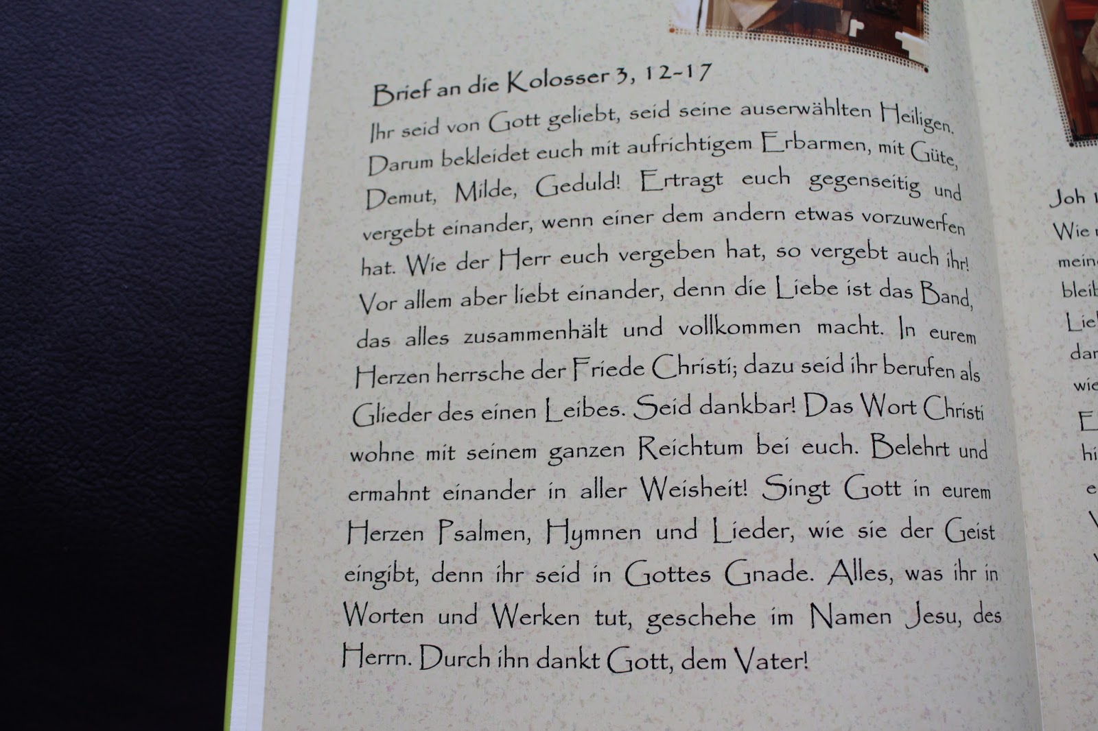 Entsprechend zum Trauspruch wählten wir auch den Brief an die Kolosser 3,12-17 als Lesung aus.