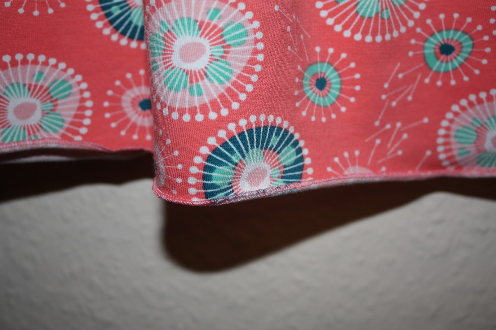 Die Säume an Ärmeln und unten habe ich mit Rollsaum versehen.
