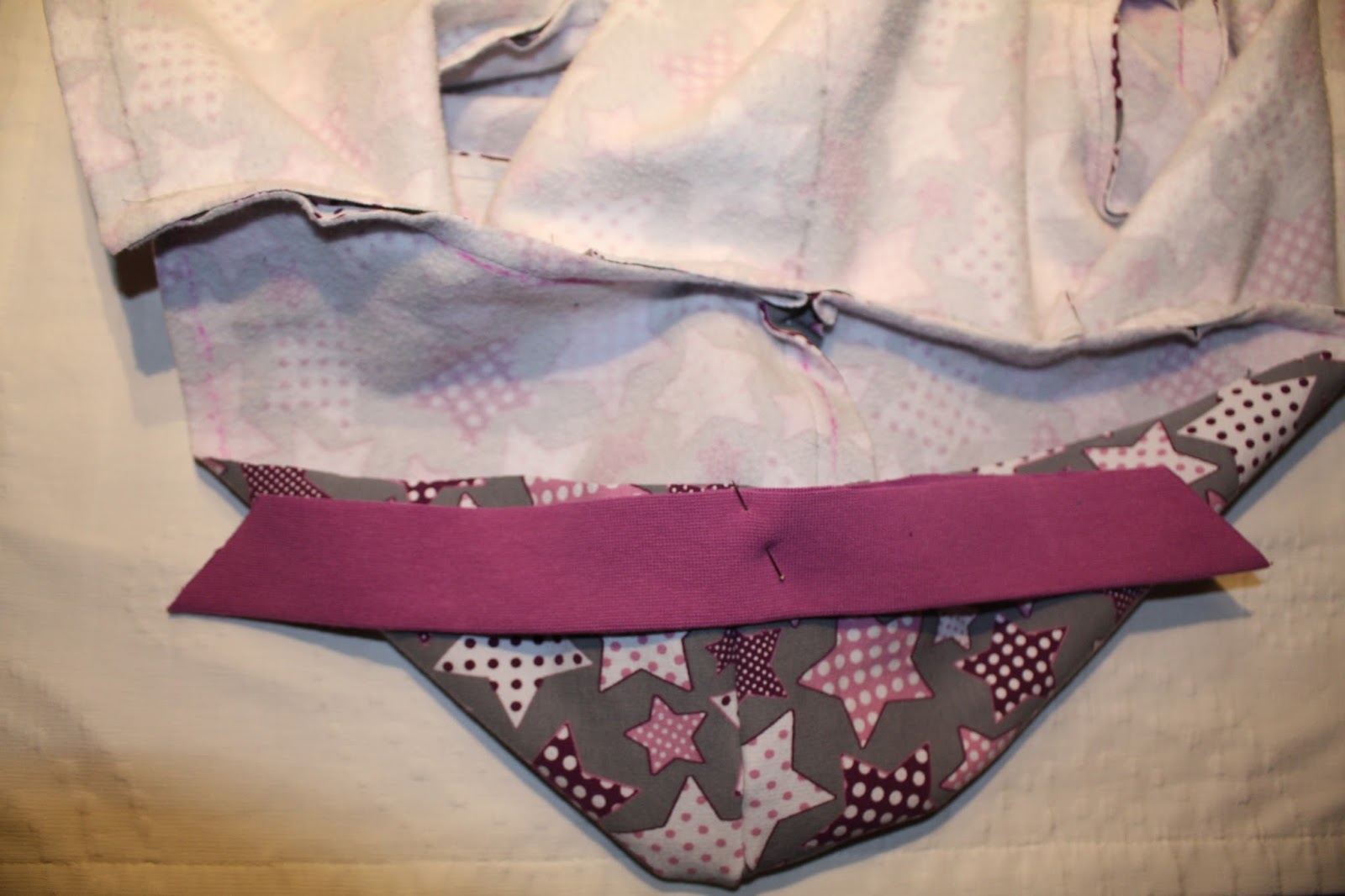 Auch diesmal habe ich kleine Veränderungen vorgenommen. Wie schon bei der ersten Jacke habe ich die Bündchen an Kapuze und Bauch nicht schräg an den Enden genäht sondern vorher bereits schräg zugschnitten. Und damit ich selber nicht jedes Mal überlegen muss und wie bei der ersten Jacke das Bündchen zunächst falsch schräg abschneide, habe ich das diesmal mit Fotos genau festgehalten.