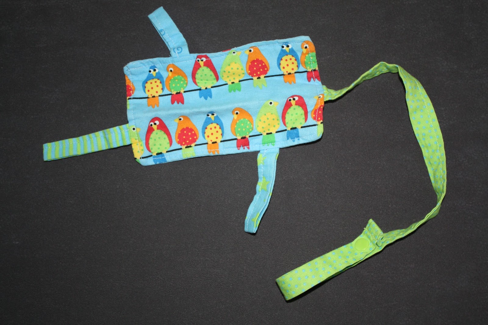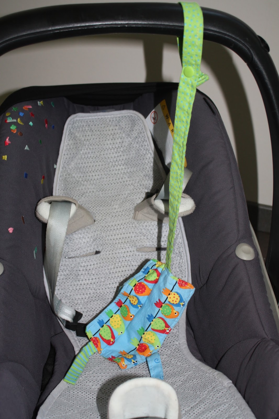 Das Model für den Autositz habe ich mit einem langem Band und Druckknopf versehen, damit es am Griff befestigt werden kann und so nicht verloren geht.