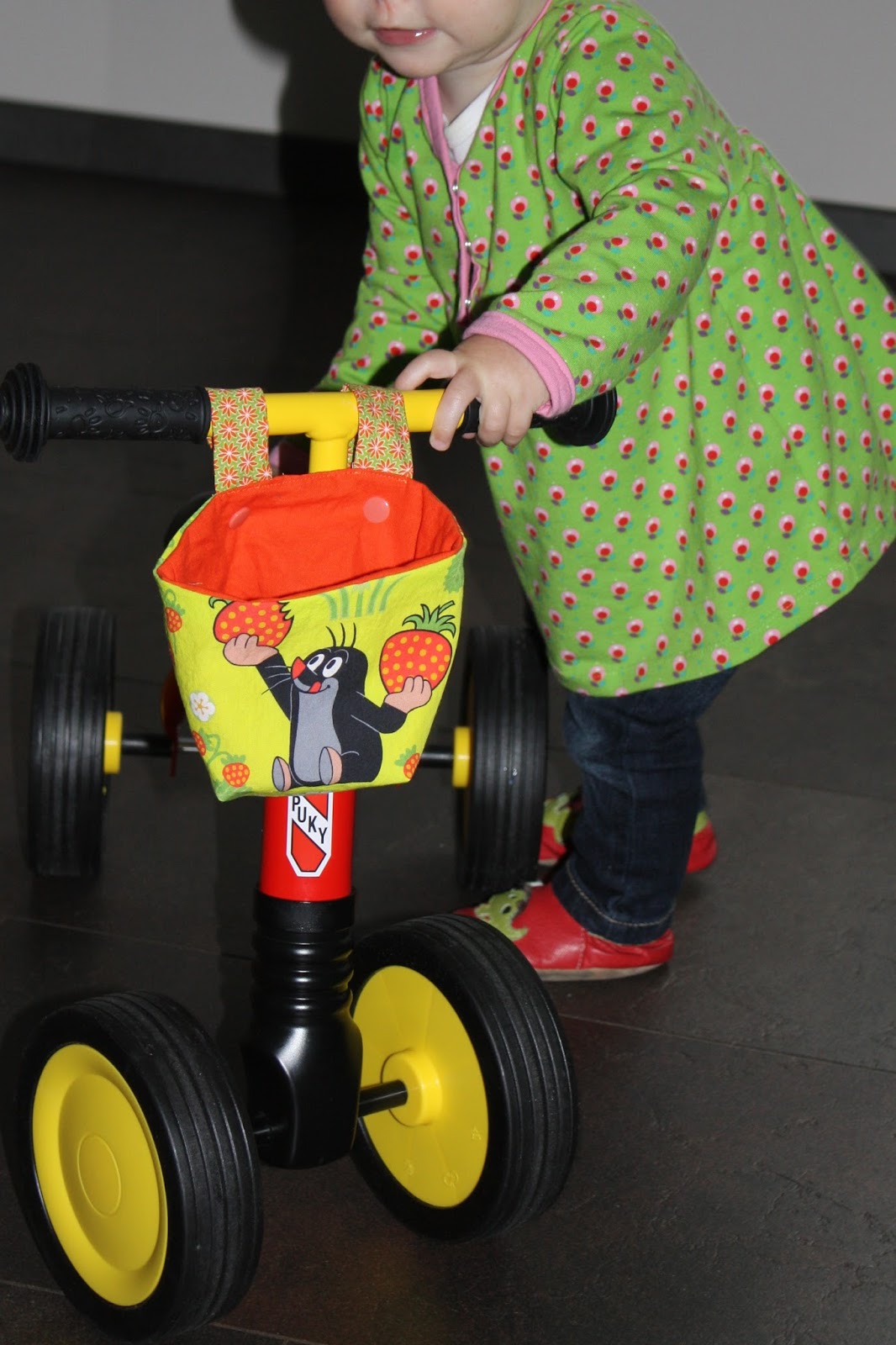 Zum ersten Geburtstag bekam Madita von ihren Paten ein Wutsch geschenkt. Dafür brauchte sie natürlich eine Lenkertasche. Also habe ich eine nach dem Tutorial von Lybtes genäht.