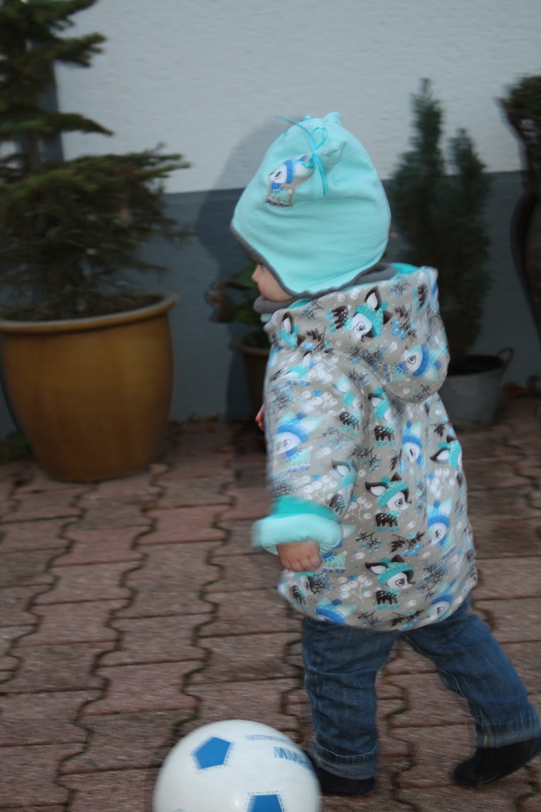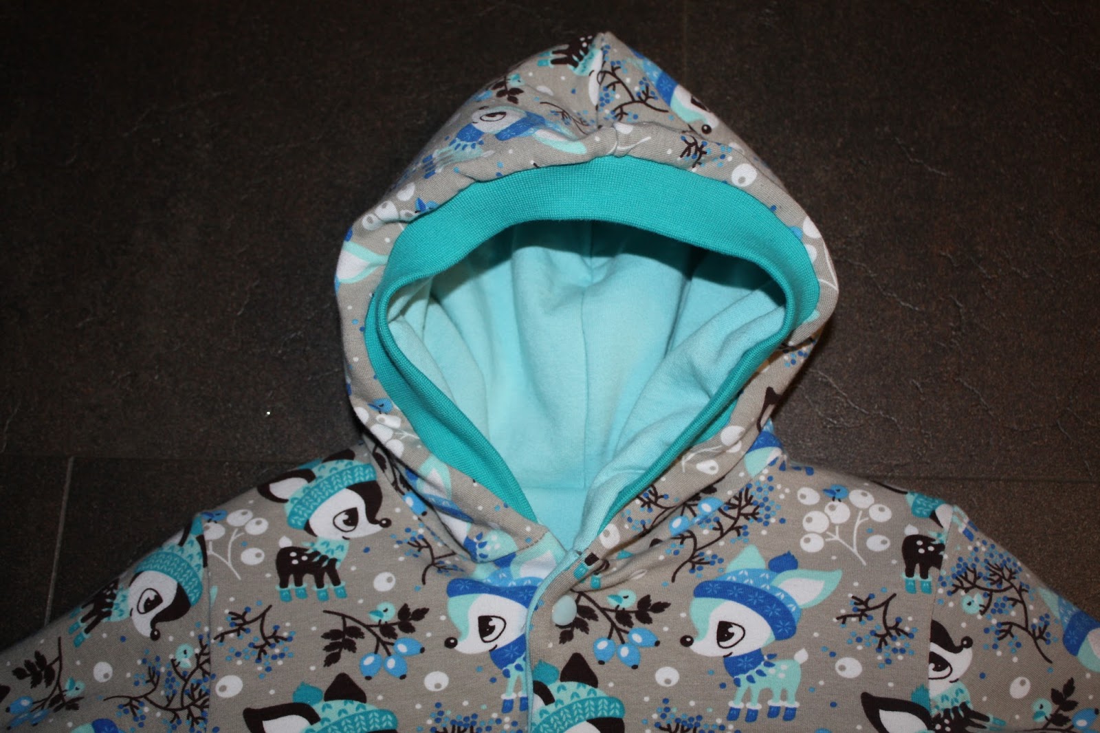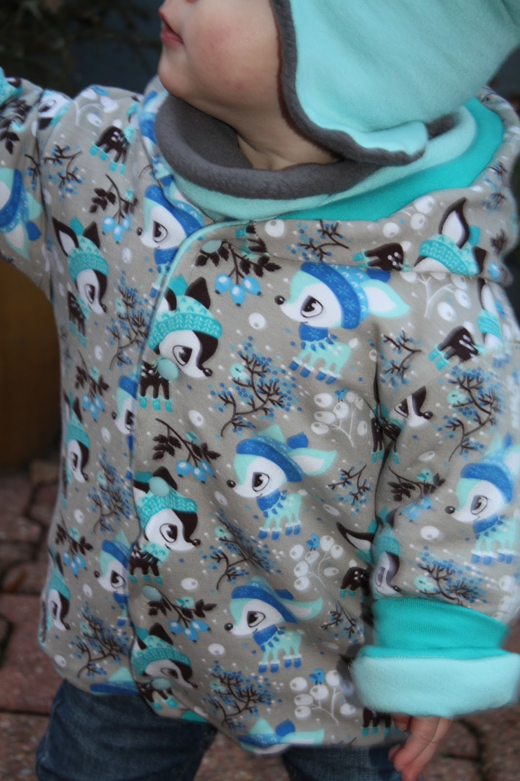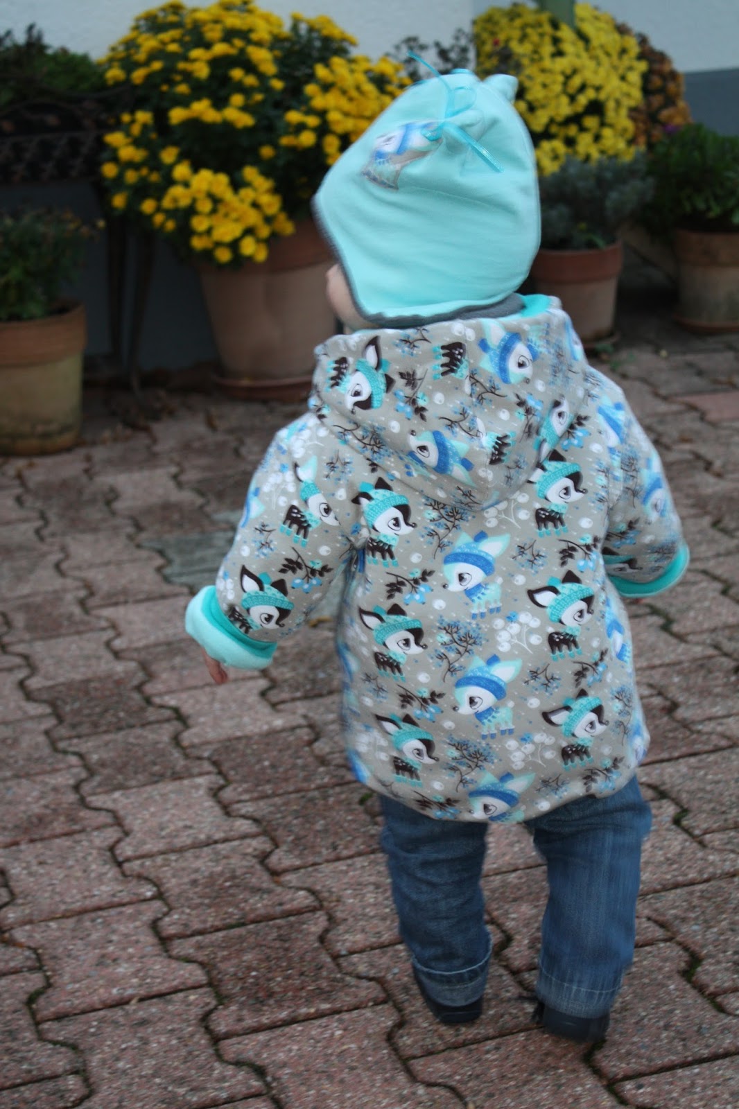 Da die Sommerjacke noch gut passt, habe ich auch die neue Winterversion in Größe 74/80 genäht. Damit wir aber im nächsten Winter nicht das gleiche Problem haben wie mit der Eulenjacke, habe ich sie um ein paar cm verlängert.
