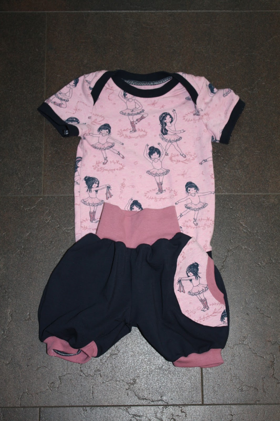 Ein weiteres Sommerset ist fertig. Es besteht wieder aus einem Kurzarm-Body mit amerikanischen Ausschnitt nach dem Schnitt