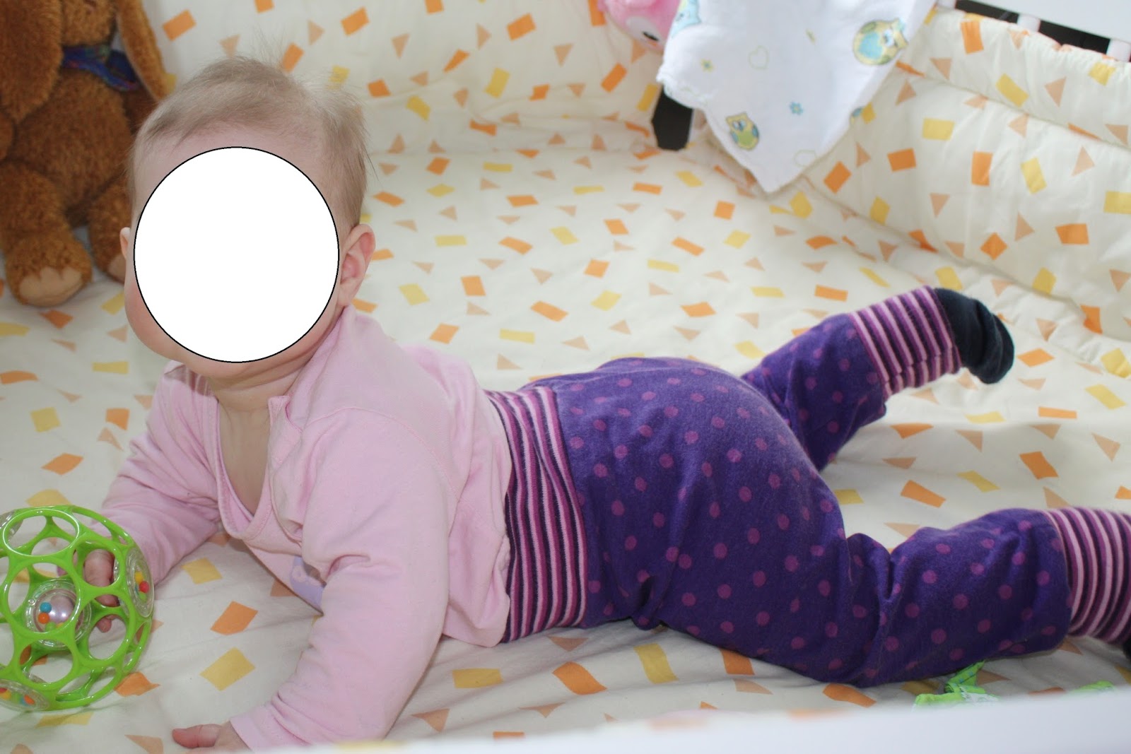 Und da ich das Schnittuster nun in Größe 68 zusammengeklebt hatte, gab es für Madita auch noch eine neue Hose.