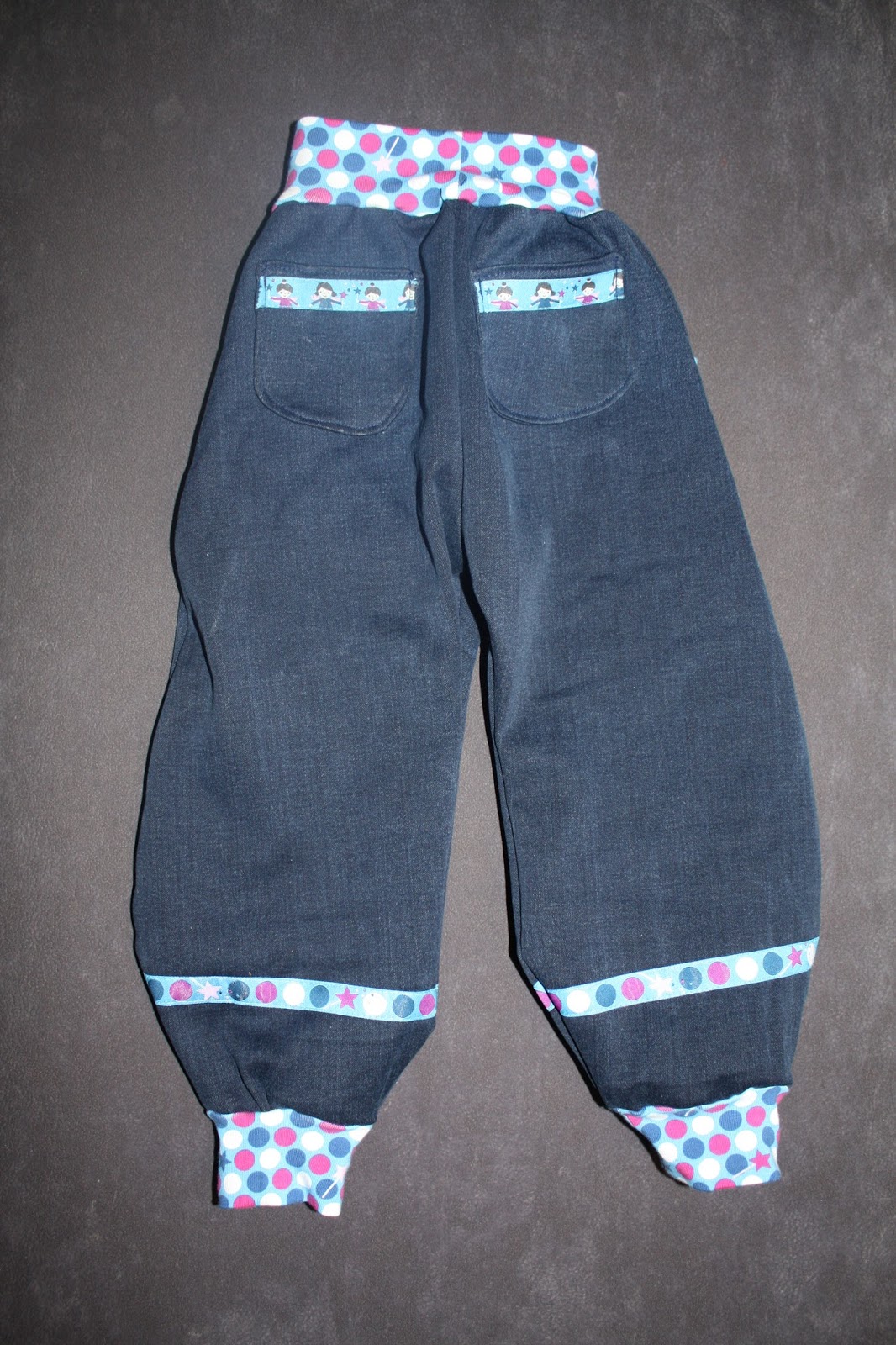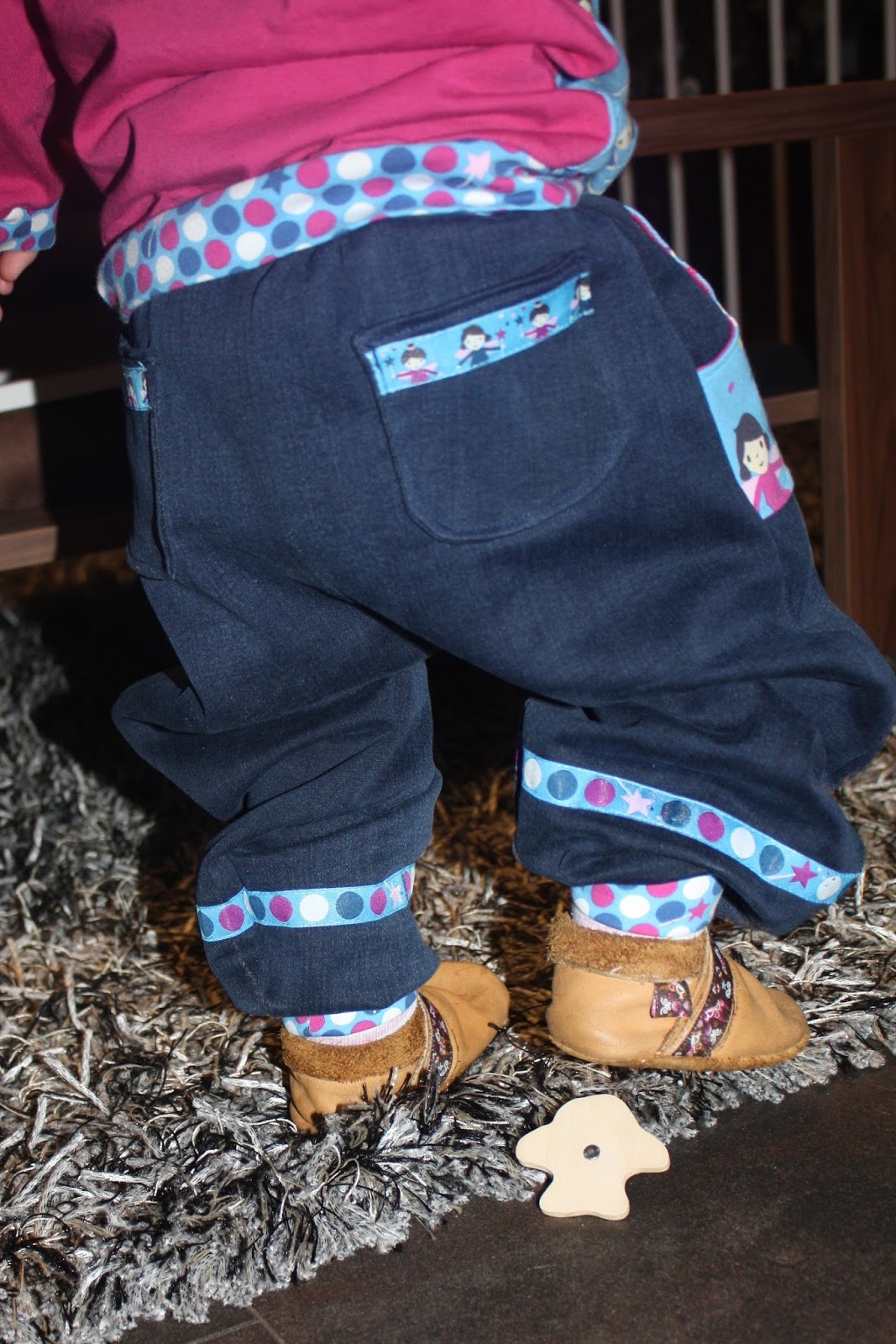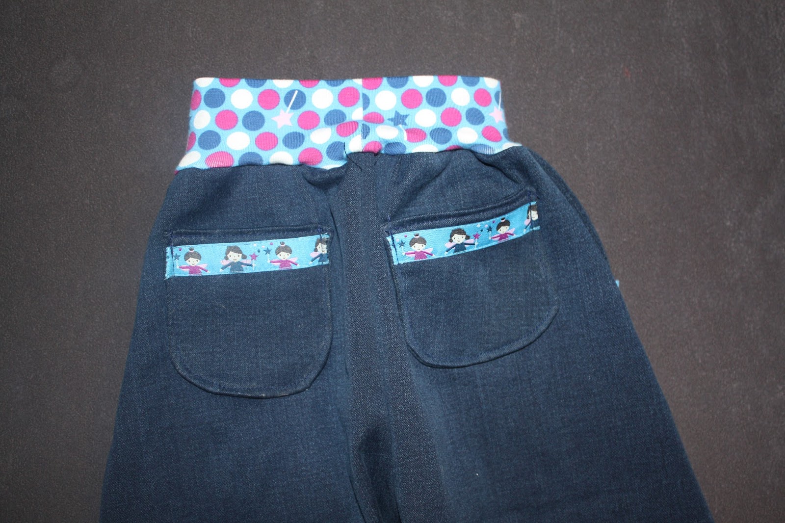 Die Hose ist der Schnitt Frida von Milchmonster. Diesmal habe ich nicht nur vorne Taschen aufgenäht, sondern auch zum ersten Mal hinten. Das ist doch etwas friemeliger. Außerdem habe ich die hinteren Taschen und die Beine mit Webband verziert.