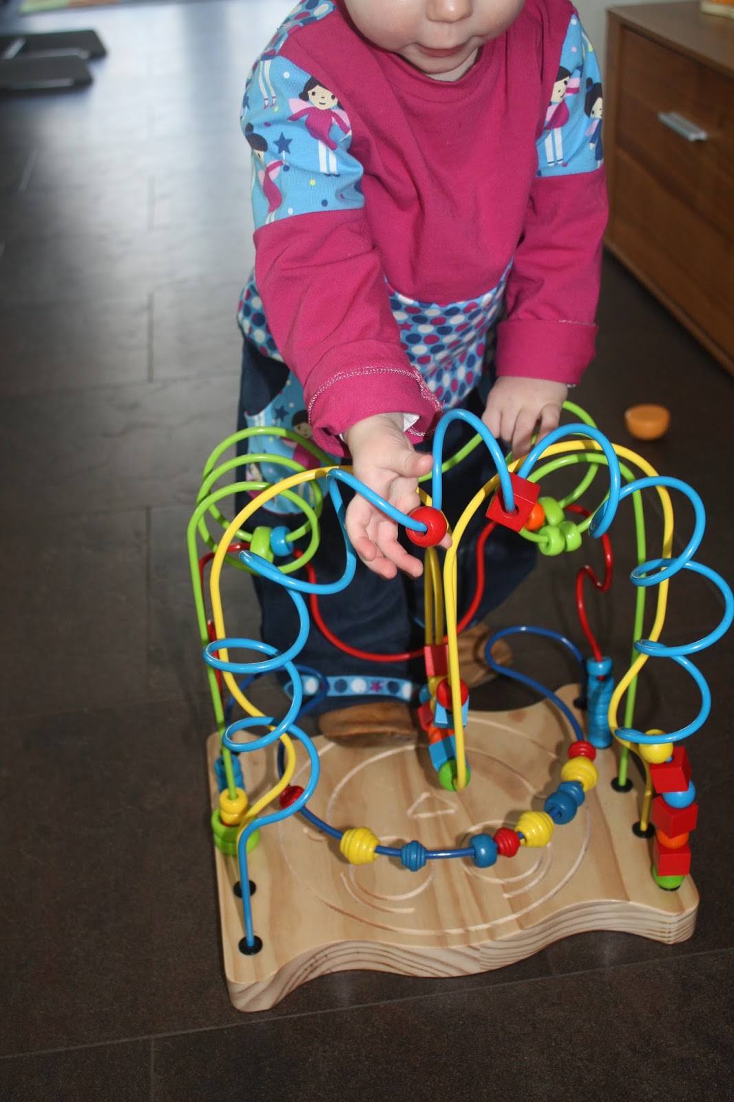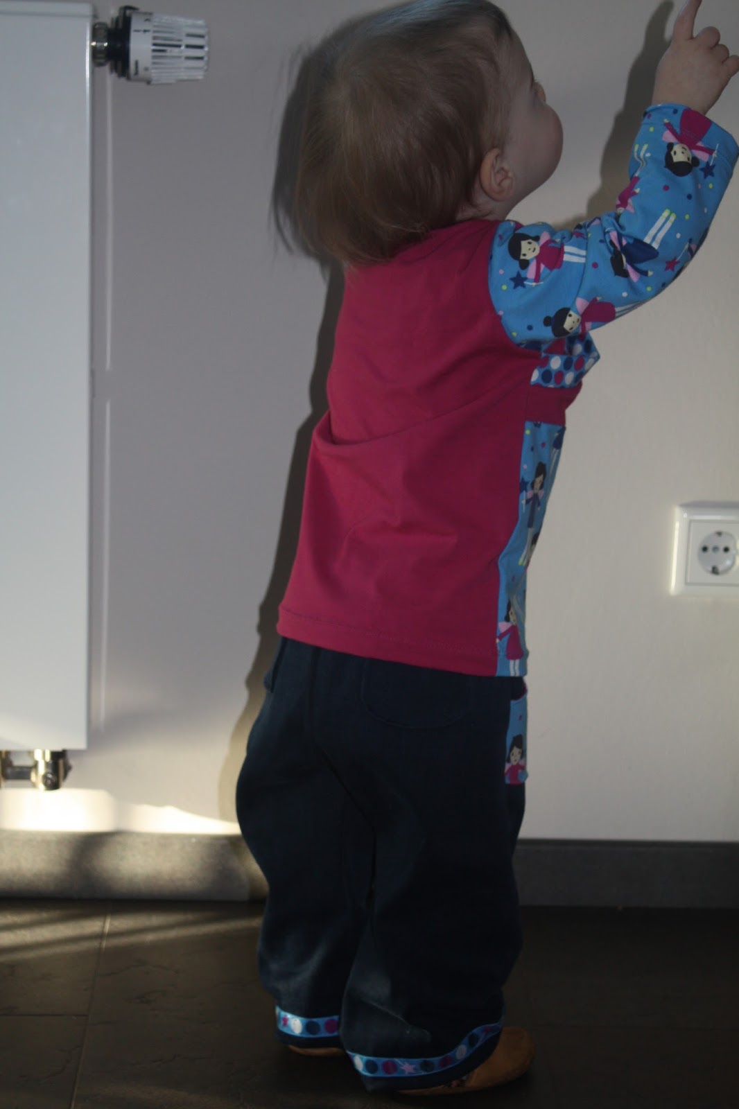 Und das dritte Oberteil ist wieder ein Babyshirt aus dem Buch „Nähen mit Jersey für Babys und Kids- Kinderleicht“ von Pauline Dohmen. Auch diesmal habe ich wieder selber etwas gemixt und außer dem Vorderteil auch die Ärmel unterteilt.