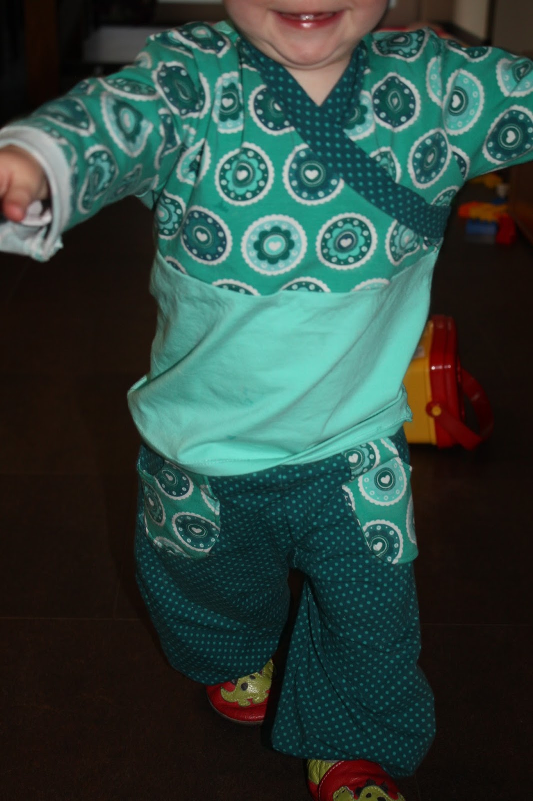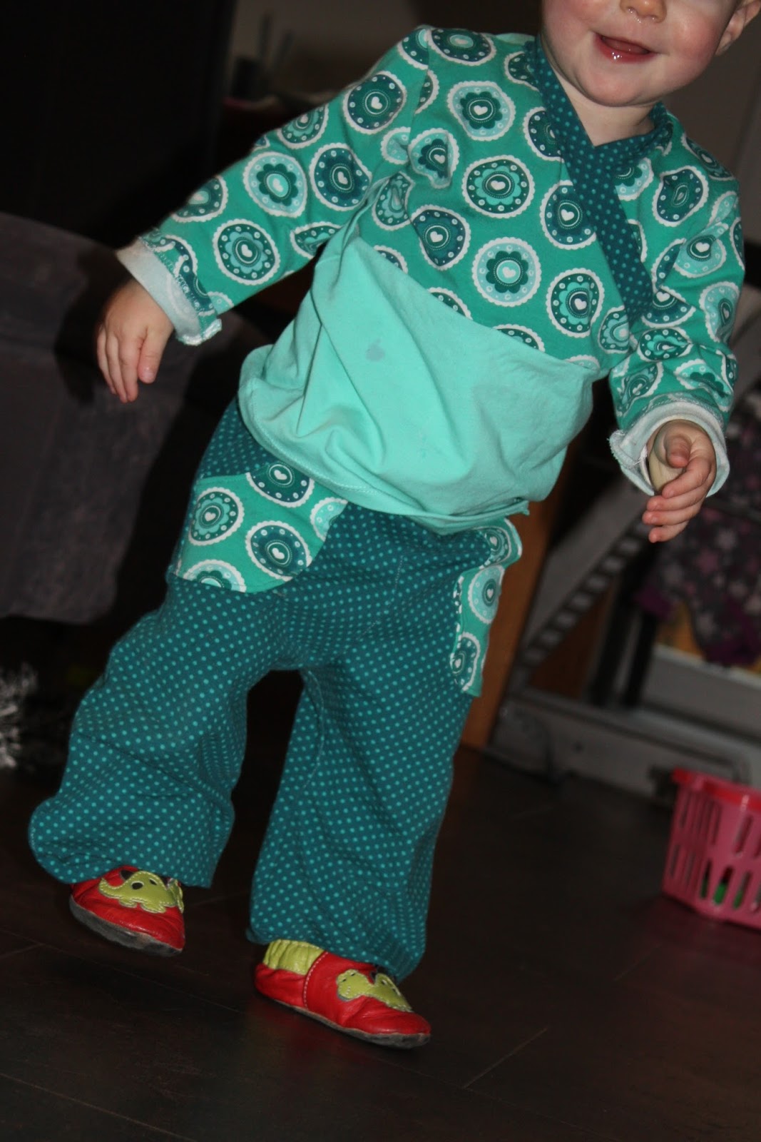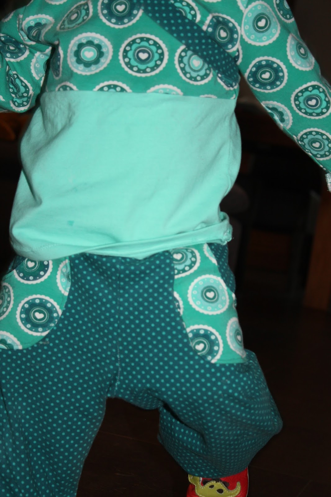 Der Blick in den Kleiderschrank zeigte, dass noch Hosen in Größe 80 fehlen. Daher gab es eine Pumphose Frida nach dem Schnitt von Milchmonster.