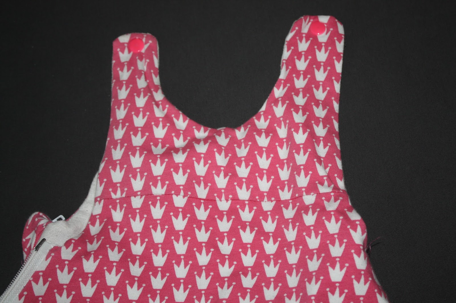 Bei der nächsten Version würde ich den Brustbereich minimal weiter machen, damit er mehr Platz zum Mitwachsen lässt. Und auch die Träger länger machen und mit mehreren Knöpfen versehen, damit auch diese besser mitwachsen.
