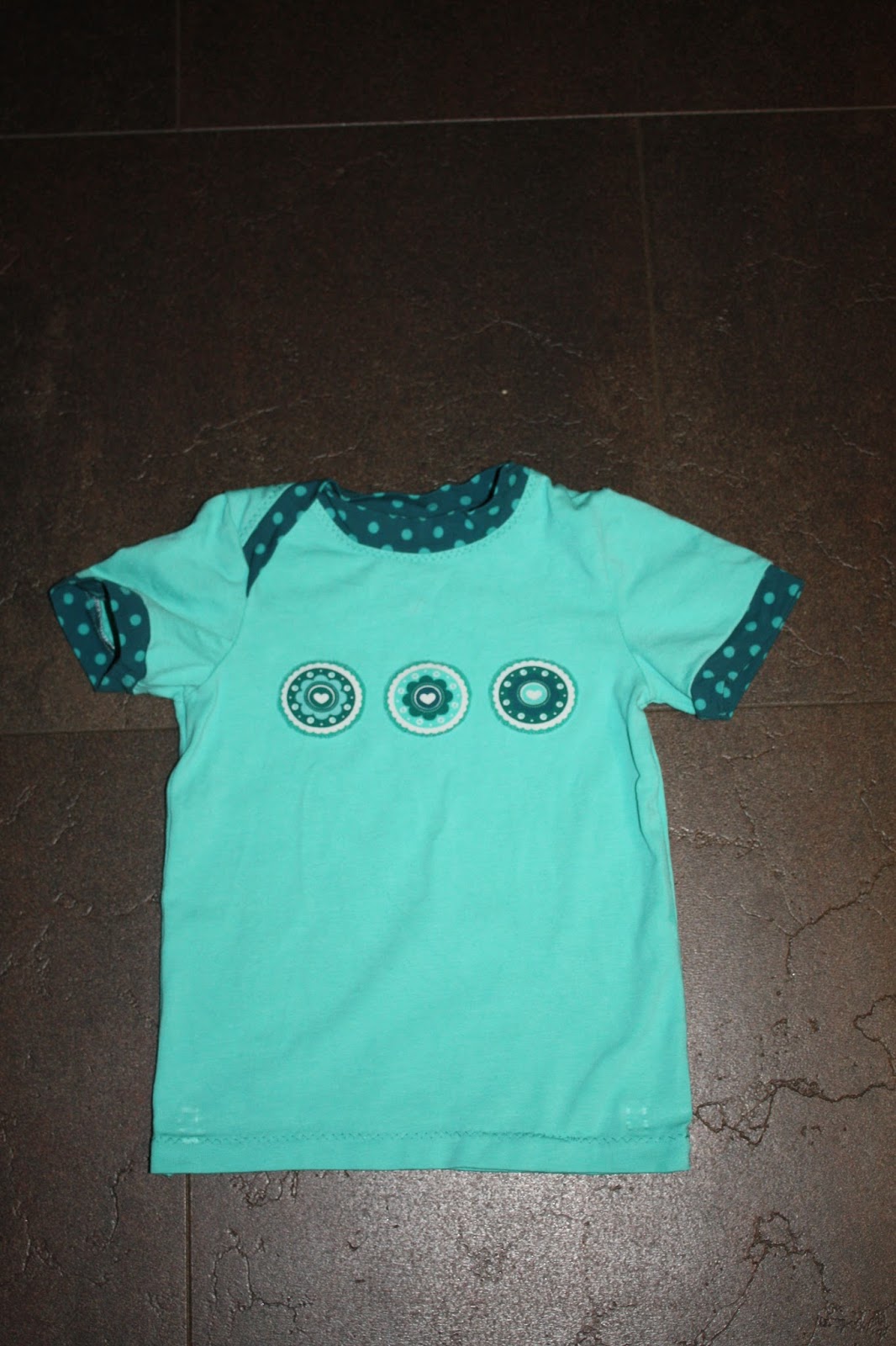 Die kurzärmeligen T-Shirts vom letzten Jahr in Größe 80 werden langsam knapp, daher gab es Nachschub. Dazu habe ich den Schnitt vom schmalen Shirt aus dem Buch „Nähen mit Jersey für Babys – Babyleicht“ von Pauline Dohmen verwendet und die Ärmel gekürzt.