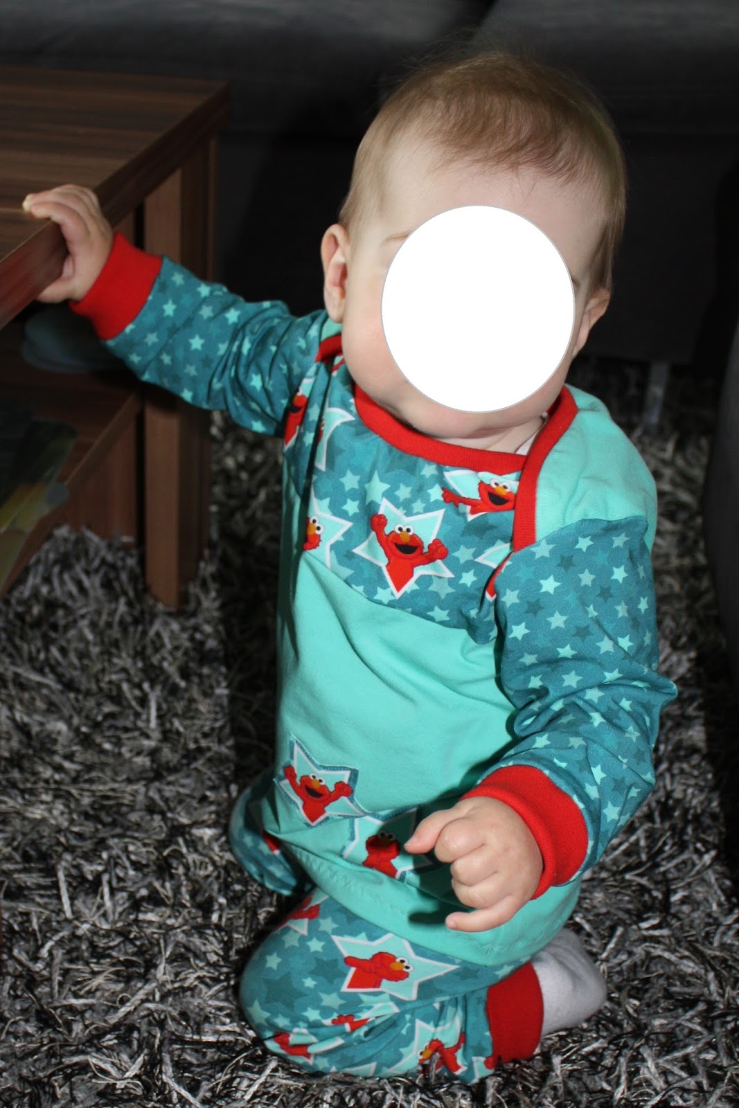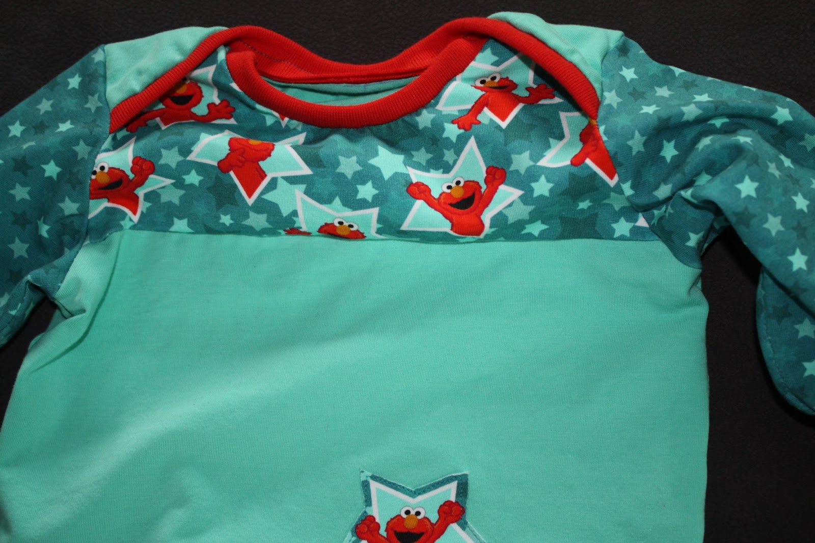 Passend zur Elmo-Hose folgt nun noch passendes Elmo-Shirt mit amerikanischen Ausschnitt. Als Schnitt habe ich das Babyshirt von Klimperklein verwendet.