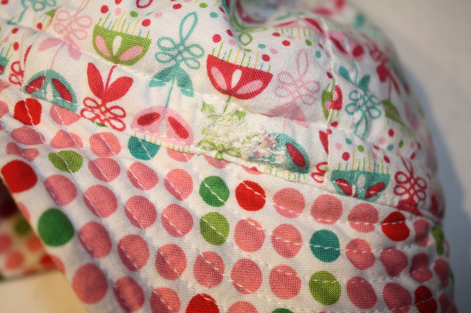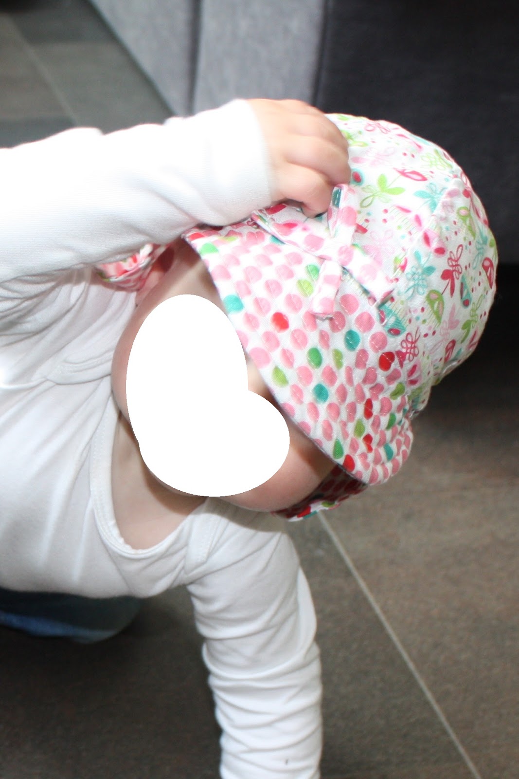Die Schleife war nicht geplant, sondern notwendig um ein kleines Missgeschick zu vertuschen. Nach dem Zusammennähen des Außen- und Futterhutes sollte man die Nahtzugabe zurück schneiden. Und ich habe dabei in den Stoff der Außenmütze geschnitten 🙁 Ich hätte zwar noch genug Stoff gehabt, aber um das kaputte Dreieck auszutauschen hätte ich fast den kompletten Hut wieder auftrennen müssen. Also habe ich das Loch geflickt und dann eine kleine Schleife aufgenäht. So fällt nichts mehr auf und es sieht doch sogar ganz süß aus 😉
