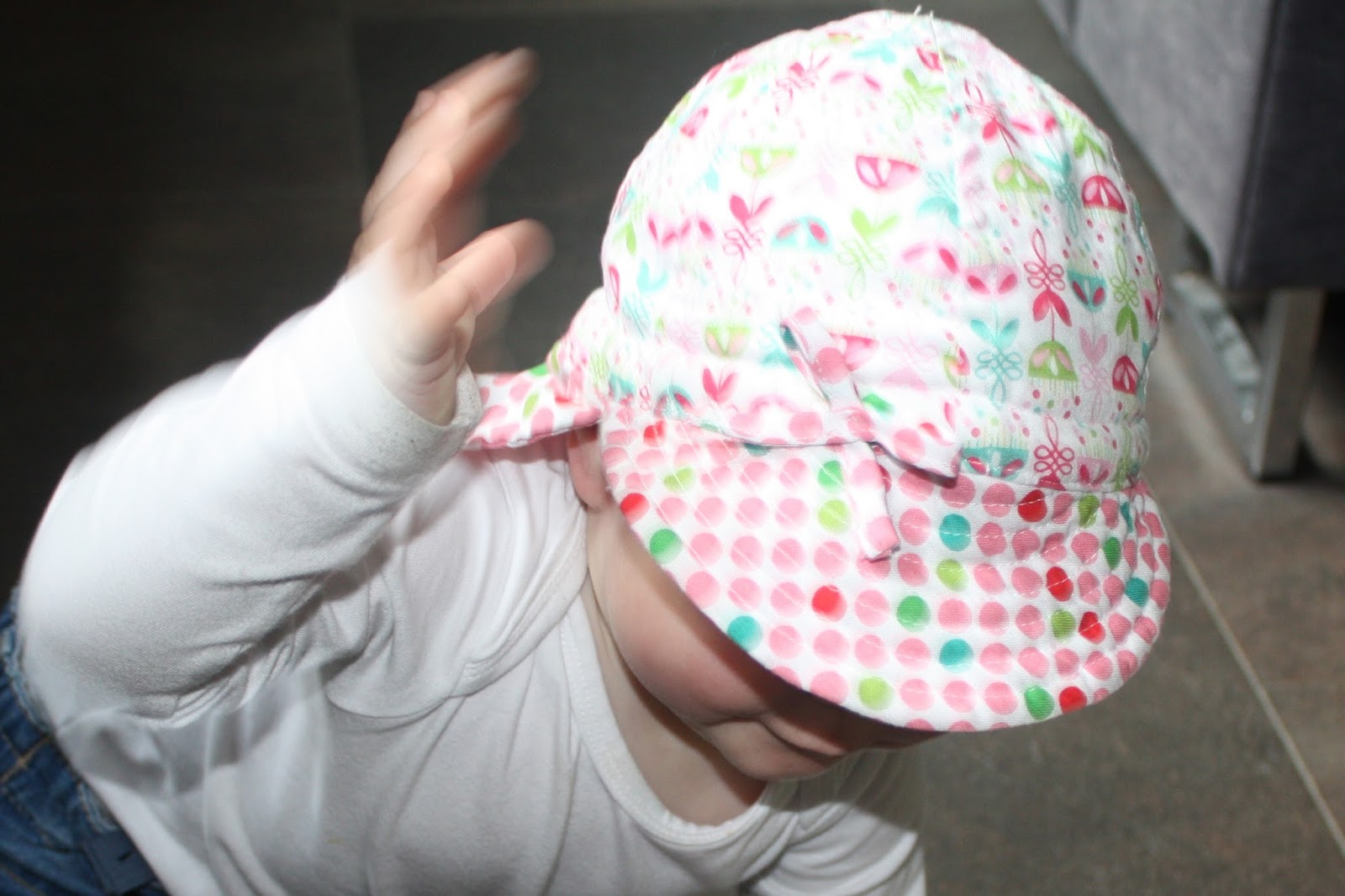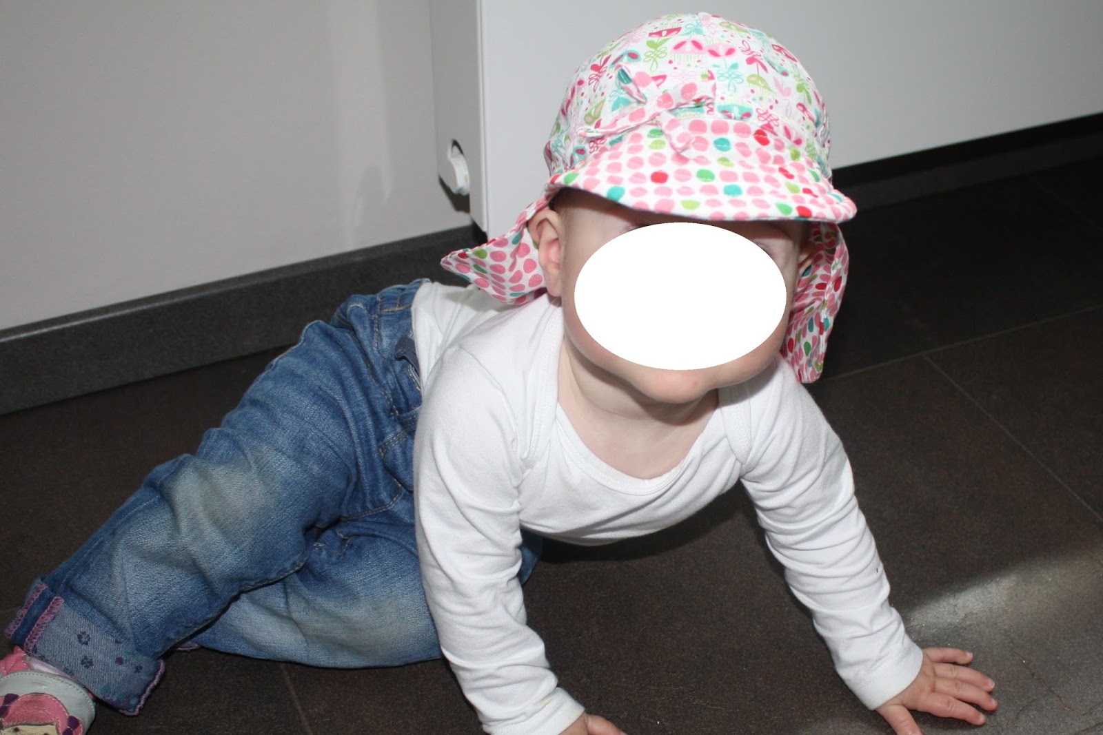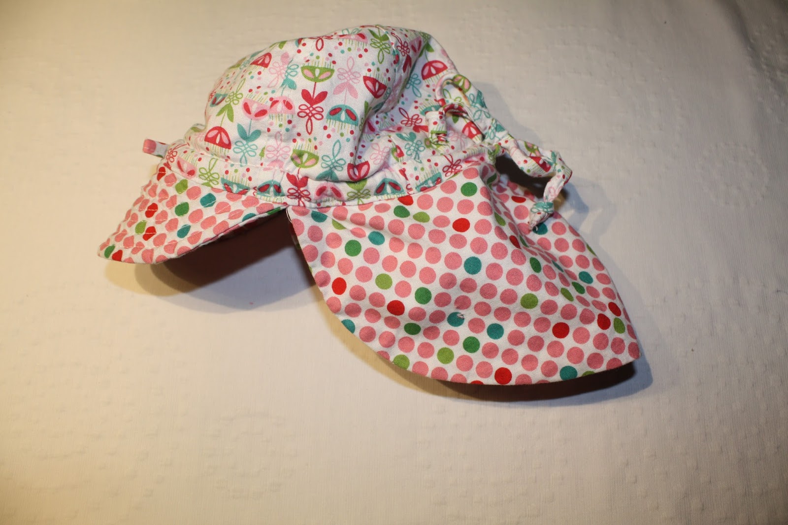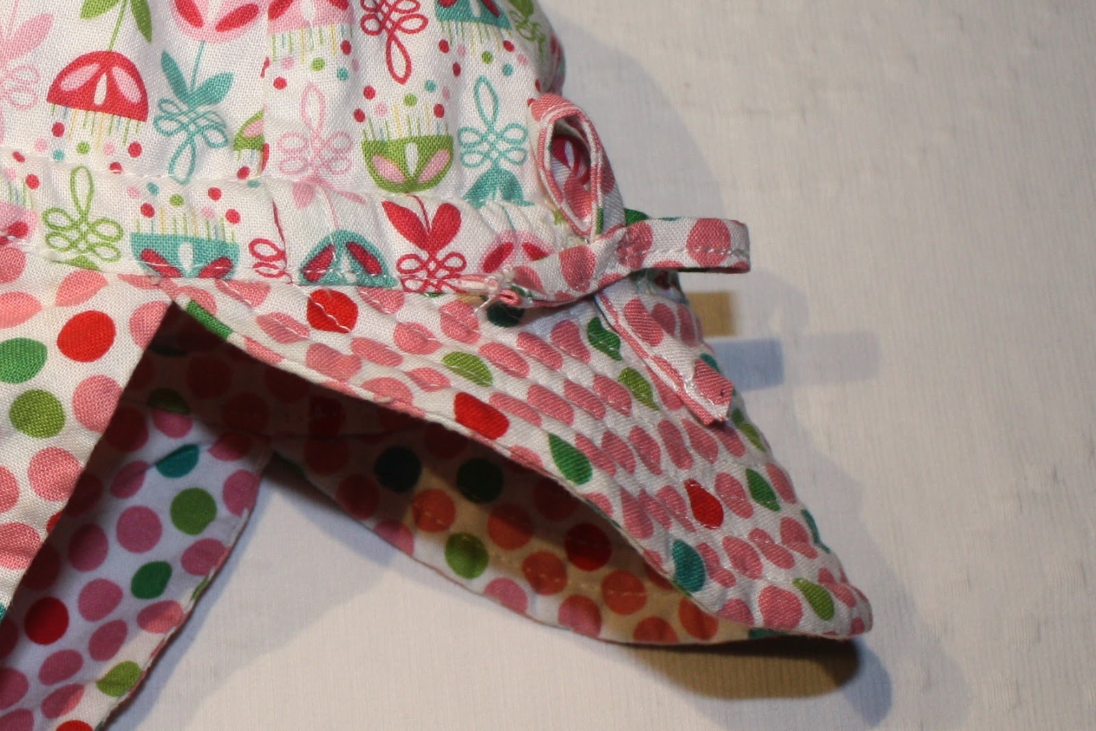 Wie bei der Probeversion bereits überlegt habe ich diesmal eine Nummer größer genäht, also Kopfumfang 46. Daher hat er diesmal auch die Bänder zum Raffen. Für Schirm und Nackenschutz habe ich wieder die große Variante gewählt.