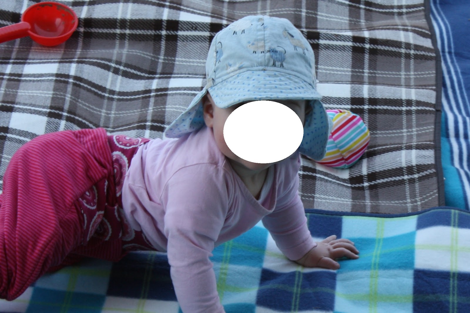 Nachdem ich Außen- und Futtermütze fertig hatte, hab ich sie Madita am nächsten Tag mal aufprobiert bevor ich den Rest fertig genäht habe. Sie saß gerade perfekt, daher konnte ich auf das Einnähen des Bandes zum Raffen verzichten. Das kam meinem Zeitmangel bis zum Urlaub natürlich entgegen, besonders weil ich noch nie Knopflöcher genäht habe. So wurde der Sommerhut am zweiten Abend rechtzetig fertig und bei dem tollem Wetter konnte Madita ihn auch im Urlaub gut gebrauchen. Allerdings lässt er nicht mehr sehr viel Platz zum mitwachsen. Aber das war ja eh mein Probeversuch und ich möchte bis zum „richtigen“ Sommer noch mal einen weiteren aus schönerem Stoff nähen. Der wird dann eine Nummer größer werden.