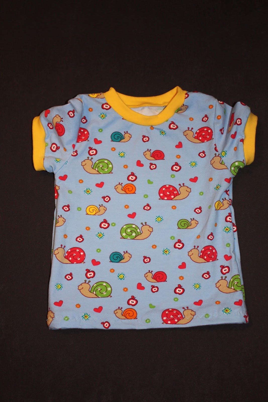Die ersten Sachen in Größe 62/68 musste ich aussortieren, weil Madita rausgewachsen war. Auch wenn das Meiste zwar noch passt, habe ich mir schon mal einen Überblick verschafft, was alles in der nächsten Größe vorhanden ist. Da habe ich festgestellt, dass kurzärmelige Oberteile komplett fehlen. Also habe ich drei T-Shirts in Größe 74 genäht und zu einem dann auch noch eine kurze Hose ebenso in Größe 74. Beide Schnitte stammen aus dem Buch “ Nähen mit Jersey für Babys und Kids- Kinderleicht“ von Pauline Dohmen. Da ich kein Gummiband da hatte, hat die Hose einfach ein Bündchen bekommen.