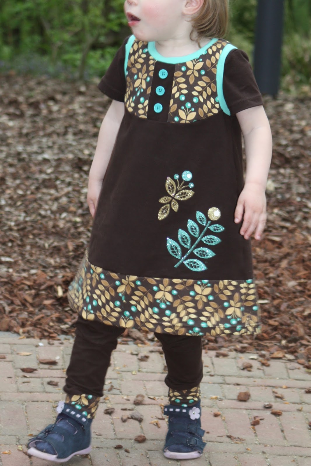 Das Kleid von Madita ist nach dem E-Book Trägerkleid von Klimperklein genäht und die Schnitte für Body und Leggings stammen aus dem Buch „Nähen mit Jersey für Babys und Kids – Kinderleicht“ von Pauline Dohmen. Verziert ist das Kleid mit der passenden Plotterdatei zum Reveriestoff. Die Glitzerfolie stammt vom Ruhrplottkind. Mir gefällt der Plott so gut, dass ich überlege, ob auf meinem Kleid nicht auch noch Platz dafür ist.
