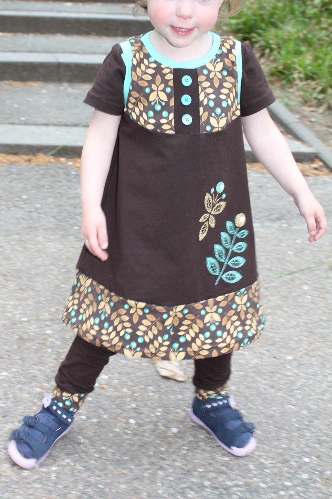 Aus den Resten konnte ich sogar noch ein Set aus Kleid, Body und Leggins für Madita nähen. So ist zunächst völlig ungeplant unser erstes Mutter-Tochter -Outfit entstanden. Maditas Kommentar auf das Zeigen unserer beiden Kleider war übrigens „Und wo ist Papas Kleid?“.