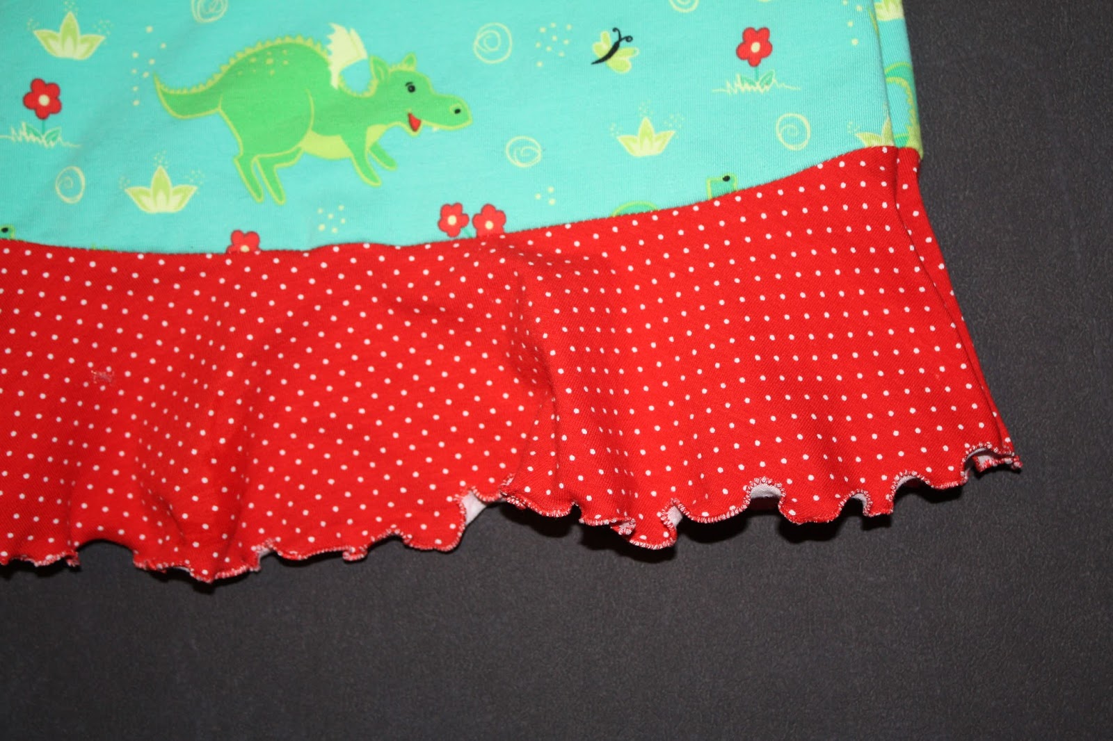 Eigentlich ist das Kleid mit normalem umgeschlagenem Saum angegeben oder in der Basisversion mit Bündchen. Ich wollte aber eh mal einen Wellensaum ausprobieren und fand zu so einem Kleidchen passt er perfekt. Bestimmt bekommt man die Wellen noch gleichmäßiger hin, aber ich bin mit meinem ersten Versuch sehr zufrieden.