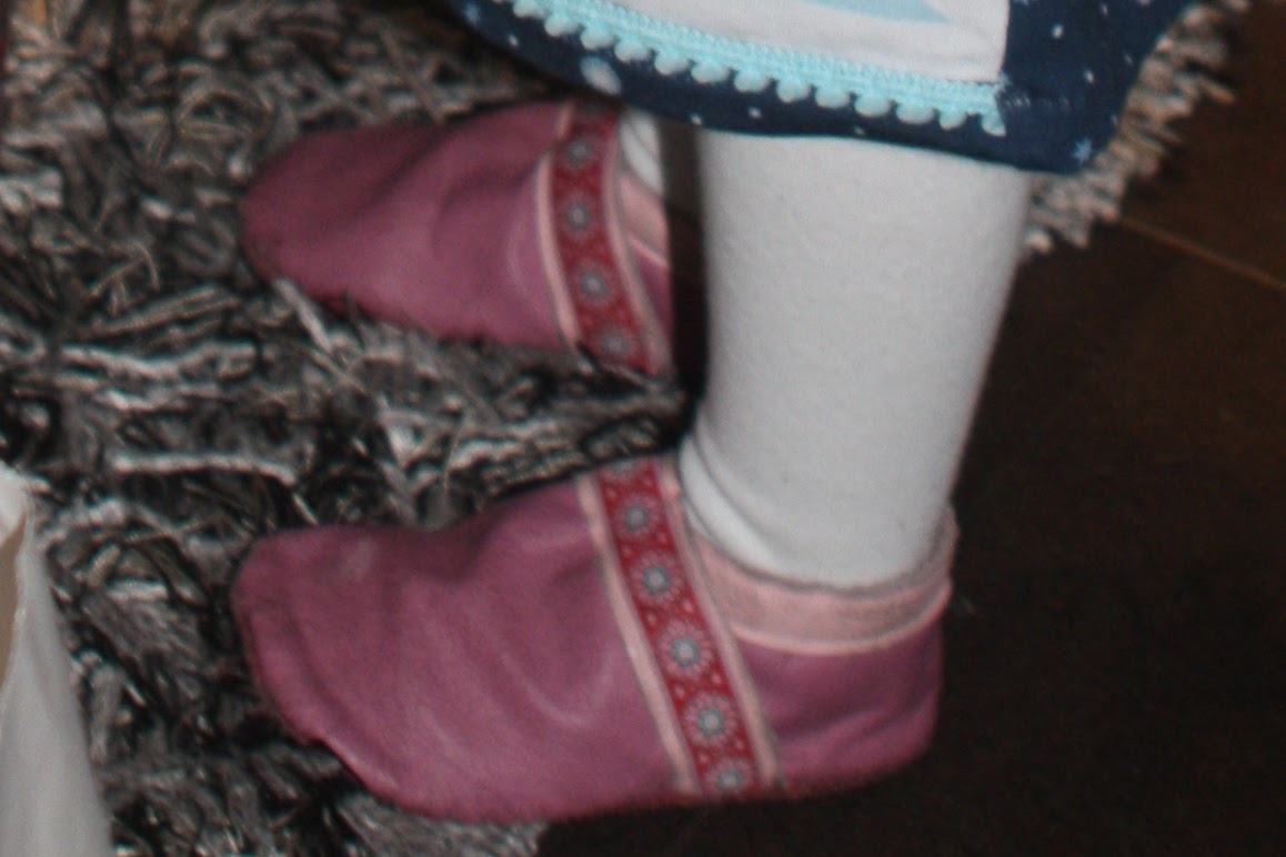 Da Madita seit Ende August in den Kindergarten geht, musste ein zweites Paar Puschen her. Genäht sind sie wieder nach dem E-Book Puschen von Klimperklein.