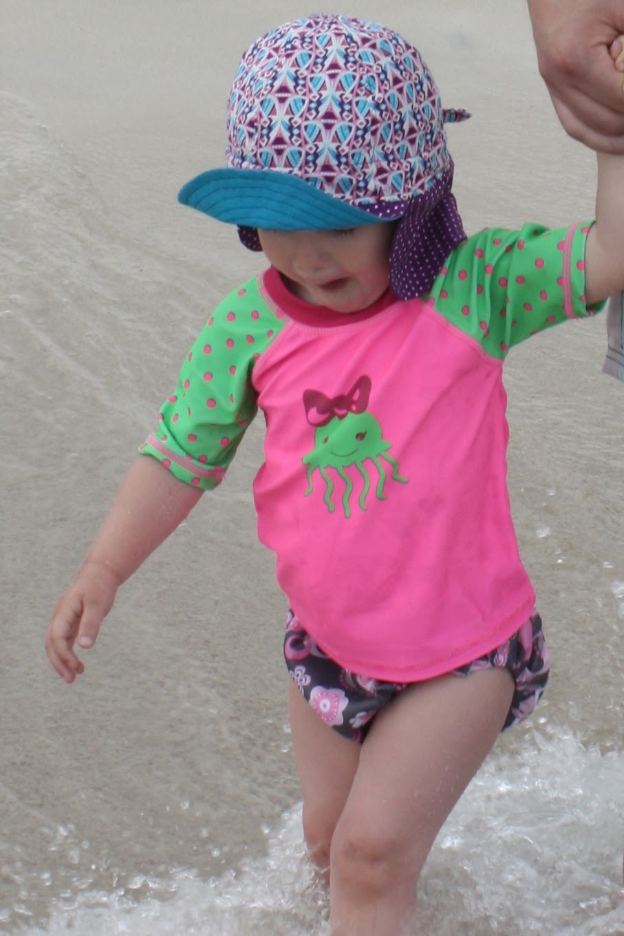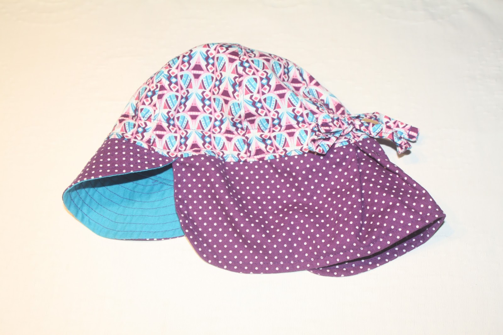Als Schnittmuster habe ich wieder den Sommerhut von Schnabelina verwendet. Diesmal aber mit kleinem Nackenschutz, weil so noch die Stoffreste vom Windeletui gereicht haben.